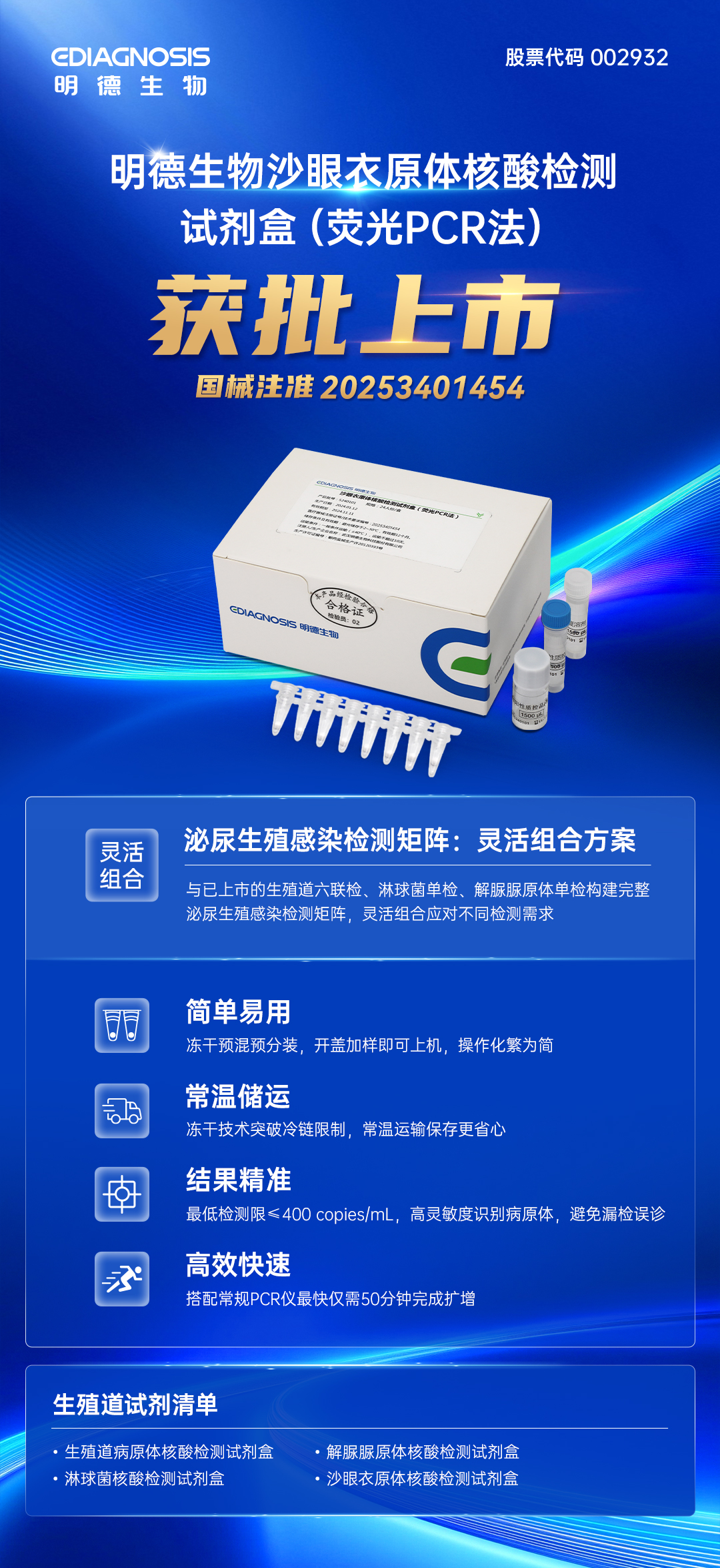 明德生物沙眼衣原體核酸檢測(cè)試劑盒上市,簡(jiǎn)化生殖感染檢測(cè),方案更靈活